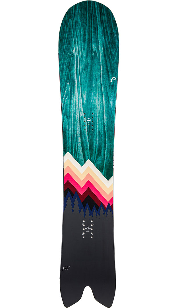 - Swallow Tail: The swallowtail on the board's tail provides better float and responsiveness in deep snow.