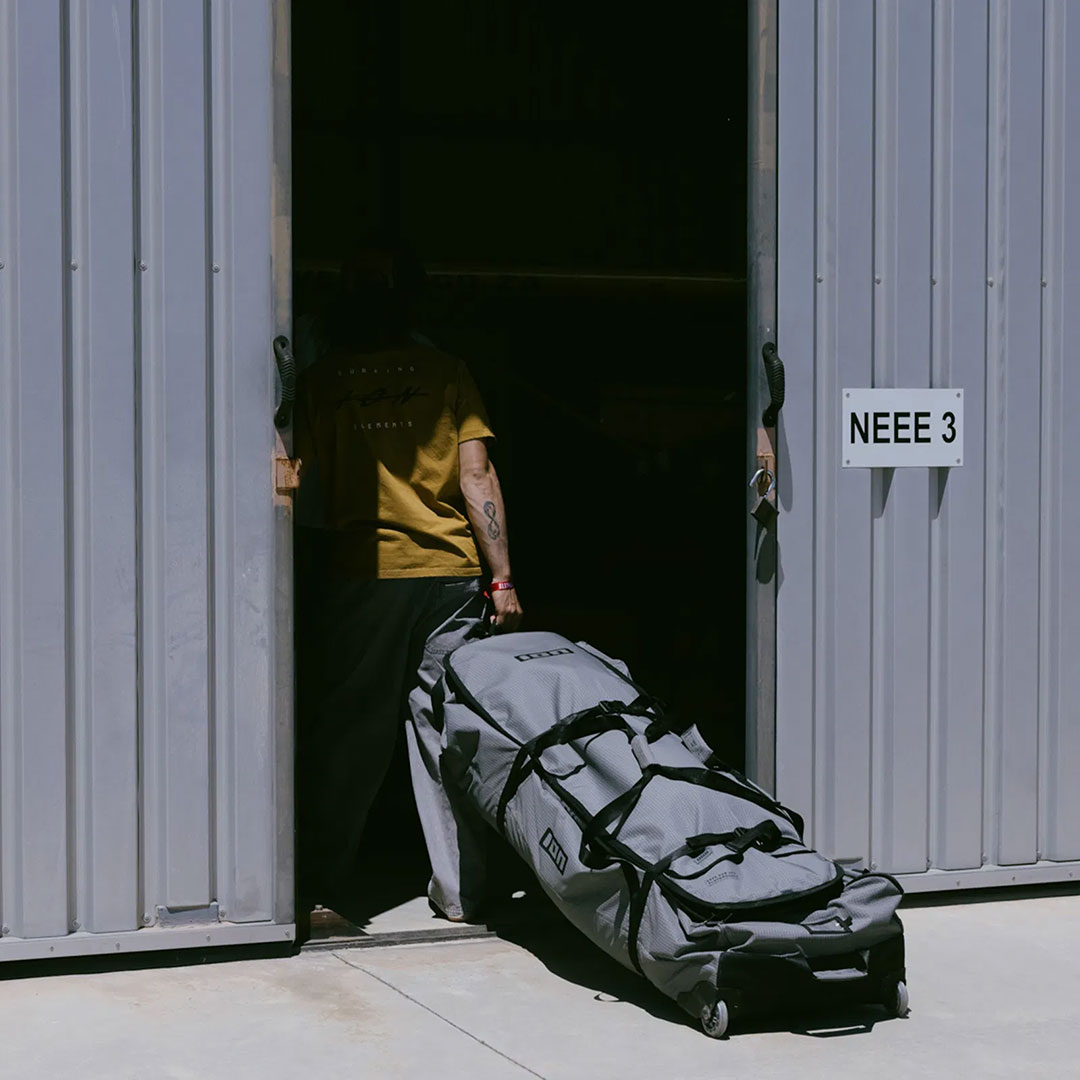 The Gearbag Kite Core is your lightweight travel solution for kiteboarding missions. Built for riders who want to keep things simple and secure, this bag combines durability with smart design to make traveling easier. Made with 100% recycled PU-coated PET 450D, the outer shell is tough enough to handle the wear and tear of airports and road trips while staying light for hassle-free transport. The spacious main compartment fits up to two twintip or directional board and four kites (depending on size), giving you everything you need for your next session in one streamlined bag. The top-loader design lets you strap another bag on top, and the connective handle let's you strap the bag to a trolley, making it easier to navigate crowded terminals or streets. Smooth integrated wheels keep the load rolling effortlessly, and a small tool bag is included for quick fixes on the go. We recommend packing your soft goods like towels or wetsuits to create more padding for your gear.