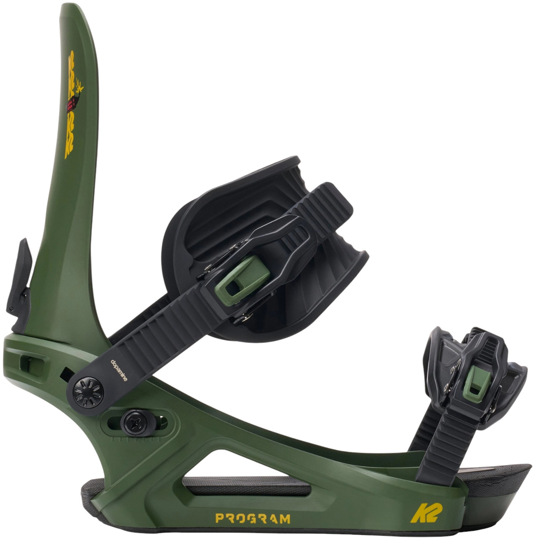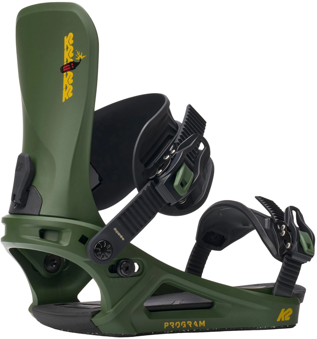 The K2 Program snowboard binding is a high-performance binding for the advanced-to-expert level snowboarder looking to take care of mother nature, without sacrificing performance. A 50% Glass filled nylon chassis is surrounded with castor-bean based materials, with a goal of reducing the size of a bindings carbon footprint.