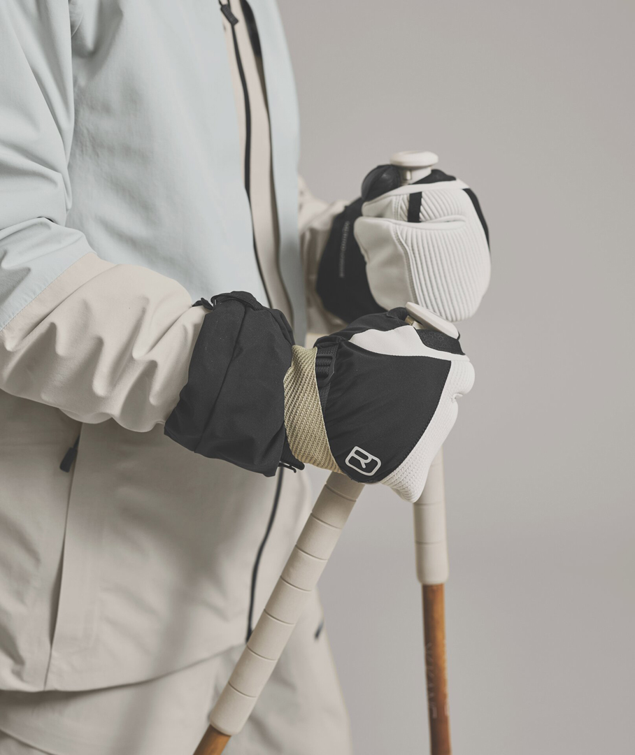 Sunshine, wind or cold and even when conditions are changeable – you’ll be ready for whatever the weather throws at you with the FREERIDE 3 FINGER GLOVE PRO. These extremely robust and long-lasting gloves come with separate outer and inner gloves, meaning they can be quickly and easily adjusted for any temperature: When ascending, the inner glove made from breathable MERINO FLEECE LIGHT provides reliable protection against cold fingers and feels comfortably soft on the skin. The smart finger makes it easy to operate a cell phone without having to remove the glove. When descending, the wind- and waterproof outer glove with DERMIZAX®EV MEMBRANE and padding made from recycled merino wool remnants can be combined with the inner glove for additional protection from the cold, or used separately on warm days. The durable, double-layered goatskin leather on the palm provides a non-slip hold and extends over the fingertips for a sure grip in icy mountain terrain. Thanks to the dual width adjustment at the wrist and cuff, the outer glove can be optimally adjusted to effectively keep cold and wind at bay. All these technical details combined with a classic look make the FREERIDE 3 FINGER GLOVE PRO an essential companion for all adventurous freeriders!