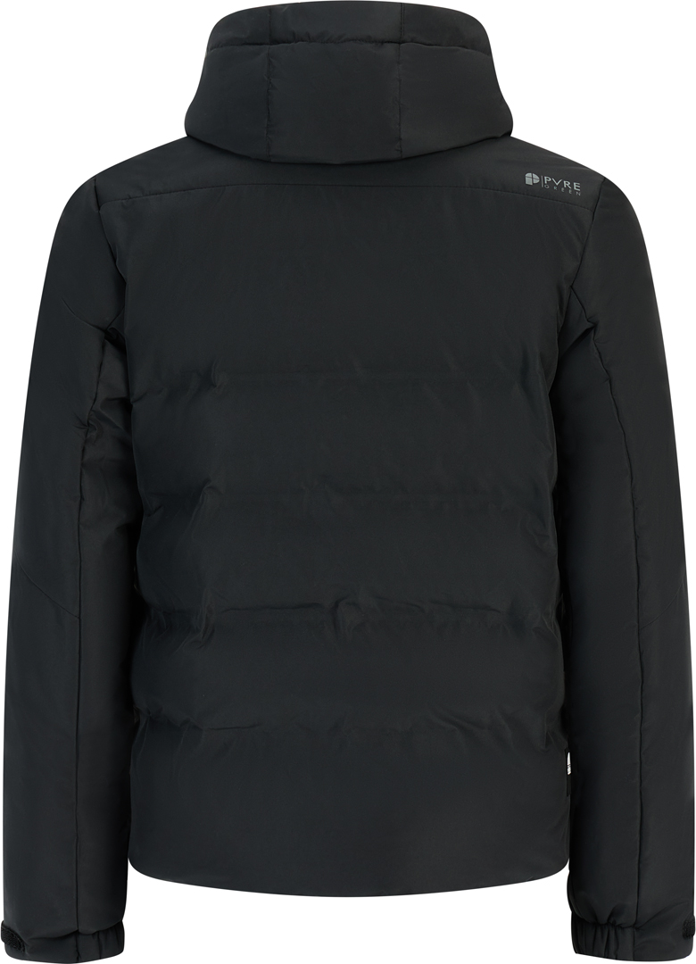 The PRTSuperior ski jacket combines a sporty, close-fitting design with sophisticated functionality—ideal for skiing or snowboarding. The material is a blend of polyester and recycled polyester from the environmentally conscious PVRE-GREEN series, making it both durable and eco-friendly. The cut is slim and tailored ("Slim Fit"), allowing freedom of movement while ensuring a secure fit. A high collar and fixed hood protect against wind, snow, and cold weather, while an integrated snow skirt and inner cuffs with thumb holes prevent snow from getting in. A water-repellent membrane with a water column of 10,000 mm and breathability of 10,000 g/m²/24h ensures that you stay dry even in wet weather and moisture is wicked away to the outside. Practical details such as multiple zippered pockets, including a pocket for your ski pass and one for ski goggles or equipment, provide functional storage space. Overall, the jacket is a good choice for anyone looking for technical features, protection, and a modern, sporty look on the slopes.