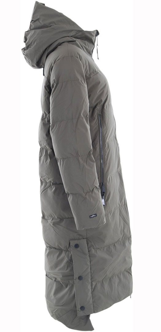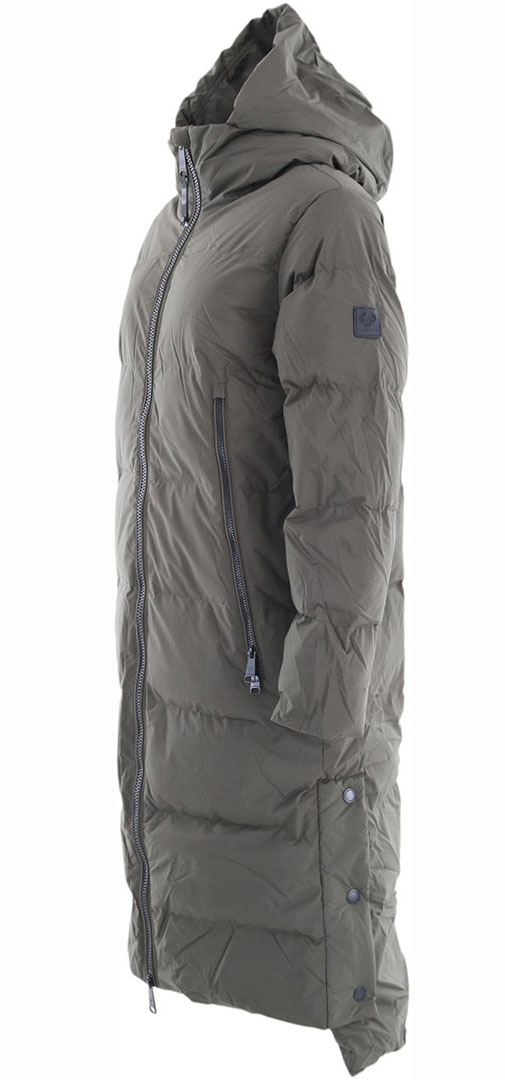 The vegan PATRISE quilted coat from ragwear, made entirely from vegan materials, serves as an excellent versatile option for the winter season. Its fashionable appearance, complete with oversized zippered pockets, immediately captures attention. Meanwhile, the snug hood provides protection for your head and ears against the chilly winter breeze. This trendy winter coat also includes lateral openings that can be securely fastened with snap buttons or left open to offer a bit more legroom as needed.