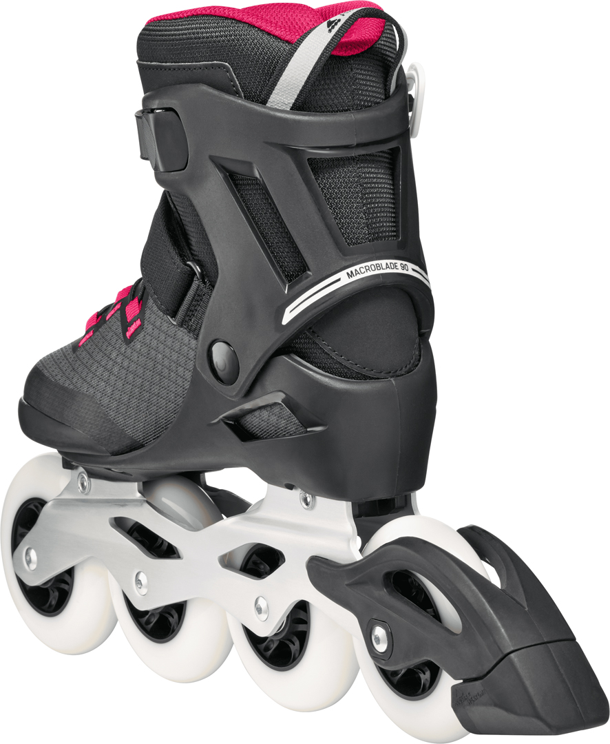 The Macroblade 90 is the perfect upgrade for skaters ready to take the next step. Whether you’re looking for new skates or for more speed, 90mm wheels are the ideal go-to size: fast, smooth, and still easy to control. This model now features new upper materials, an improved foot-wrapping fit, a redesigned 45° strap, and updated frame and wheel graphics, giving the entire Macroblade family a fresh, modern identity. The higher boot design provides added stability when learning to skate on 90mm wheels, helping you feel more in control with every stride. The engineered mesh liner offers enhanced breathability, sock-like comfort, and just the right amount of cushioning. The skate also includes a Footboard Sizer: insert it for a snug, performance-oriented fit or remove it for more room inside the skate. An aluminum frame delivers solid power transfer and durability, while the wheel and bearing setup offers a balanced mix of speed and control. Brake on the skate.