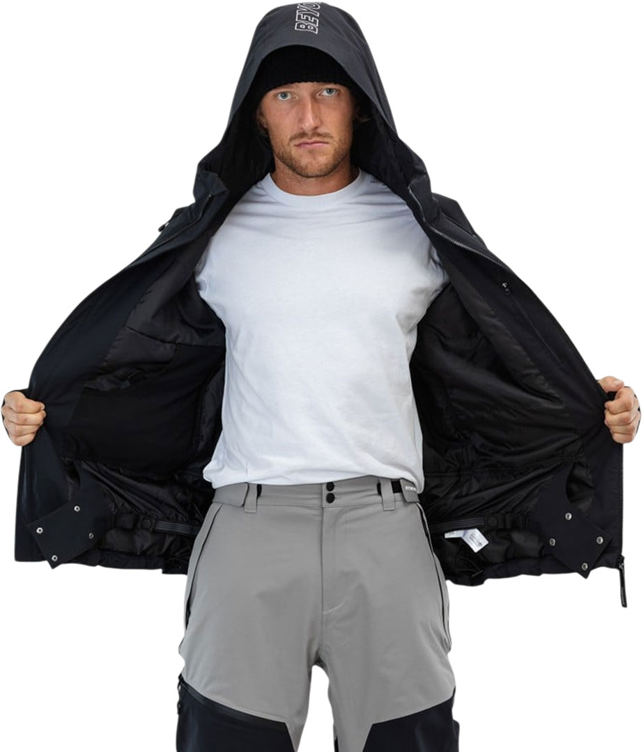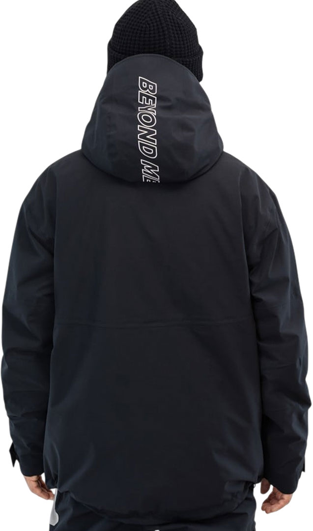 Performance features include underarm mesh vents, two-way hood and hem adjustments, elastic snow gaiter with pant attachment, and stretch cuffs with thumbholes. Storage is dialed with a sleeve pocket, inner media pocket, and inner mesh pocket for goggles and gloves. Finished with print details on chest, hood, and sleeve, it’s a classic reimagined in ripstop.