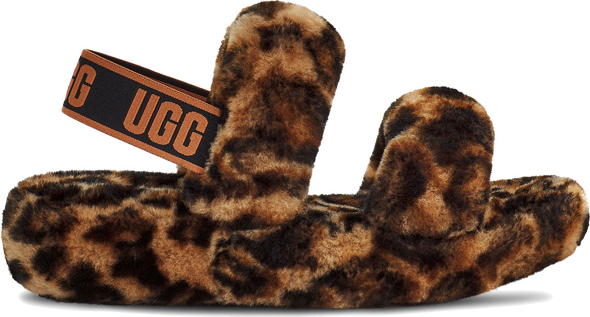 Updated in bold panther-print sheepskin for a wild statement, the Oh Yeah evolves our iconic Fluff Yeah Slide into a versatile, strappy silhouette. Featuring soft fluff and a versatile outdoor outsole, it's just as easy to slide into and equally cozy indoors or out.