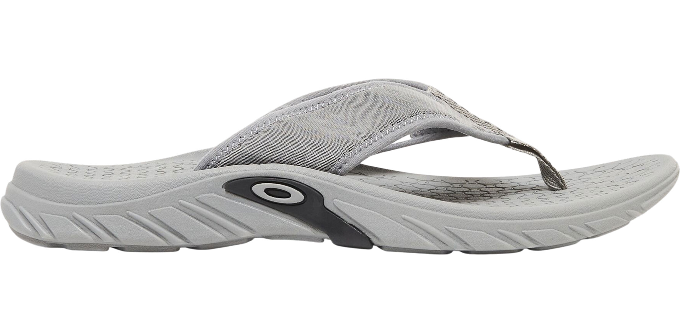Diese Flip Flops vereinen sportliches Design mit hohem Tragekomfort und funktionaler Performance. Sie eignen sich ideal für Strand, Pool, Freizeit und warme Sommertage. Das doppelt verdichtete EVA Fußbett sorgt für angenehme Dämpfung und stabile Unterstützung bei jedem Schritt und macht die Flip Flops perfekt für den täglichen Einsatz. Der atmungsaktive Lycra Riemen bietet eine flexible Passform für unterschiedliche Fußformen und erhöht den Komfort beim Gehen. Die robuste PU Gummi Außensohle mit speziellen Rillen verbessert den Halt auf nassen und trockenen Untergründen. Das markante Oakley Ellipse Logo auf Lauffläche und Seite greift das ikonische Design der Oakley Brillenbügel auf.