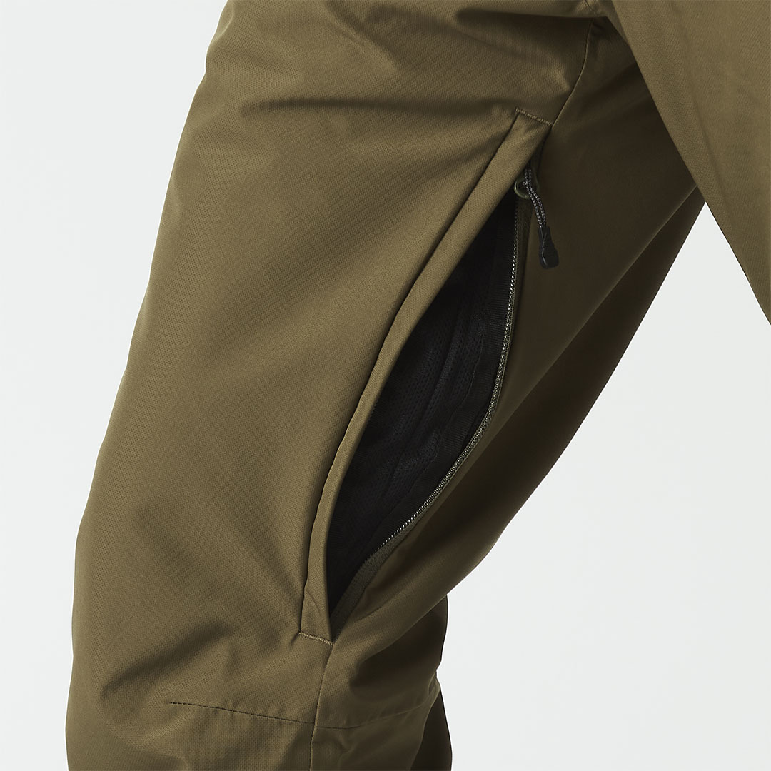 - Thigh pockets with zip under flap