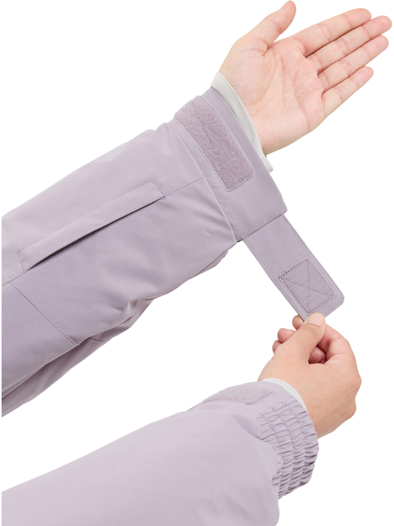 - Bündchen/Manschette: Innere elastische Handgelenkgamaschen, elastisches Ärmelbündchen mit Versteller, Saumweitenversteller in der Eingrifftasche