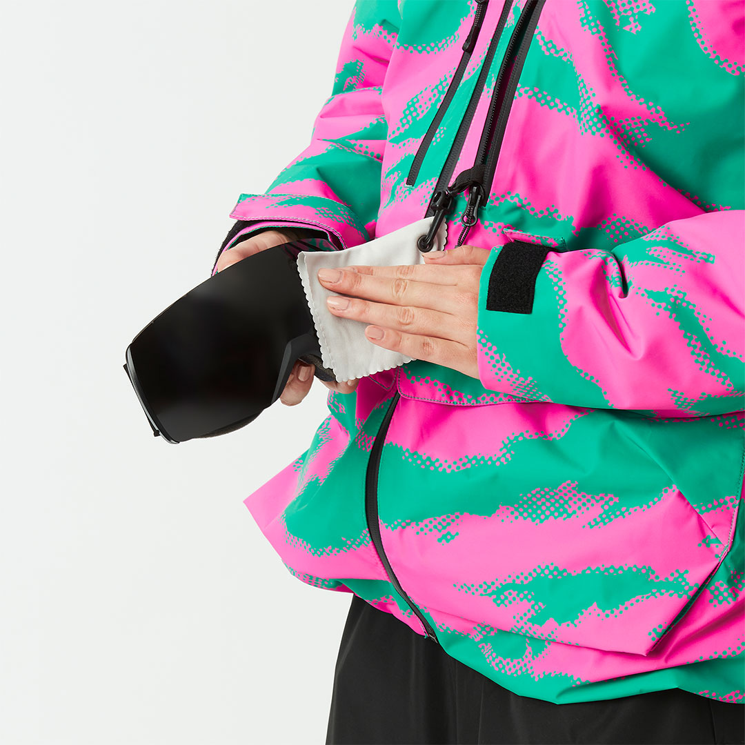Der Frontreißverschluss ist mit einem wasserfesten YKK®-Reißverschluss ausgestattet, um die Feuchtigkeitsresistenz der Jacke zu verstärken. Brusttaschen mit versiegelten Reißverschlüssen halten Ihre wichtigsten Utensilien sicher und trocken, selbst an den nassesten Tagen. Ein verstellbarer Kordelzug am Saum sorgt für eine optimale Passform und hält Schnee und Wind ab, während Sie Kurven fahren und tief verschneite Hänge erkunden.