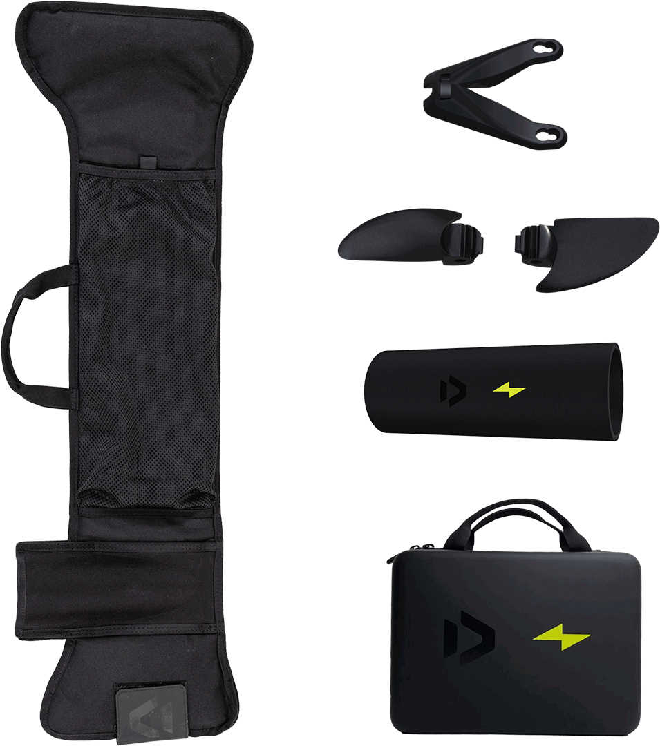 - eTrapez Set: Die Energie für den Foil Assist kommt von zwei kompakten Batterien, die in einer wasserdichten Box an einem leichten eTrapez (ca. 3,76 kg) untergebracht sind. So bleibt dein Board frei von zusätzlichem Gewicht und Widerstand. Durch die Platzierung der Batterien auf deiner Hüfte bleibt das natürliche, flowige Foil-Gefühl erhalten, während du immer noch volle Bewegungsfreiheit hast. Das eTrapez ist auftriebsfähig und leicht abnehmbar. Ein Kabel verläuft sauber entlang der kürzeren Board-Leash und verbindet die Batterien mit dem eMast. Der in der Batteriebox integrierte Empfänger sorgt während deiner gesamten Session für eine stabile und zuverlässige Verbindung zwischen Fernbedienung und Motor.
